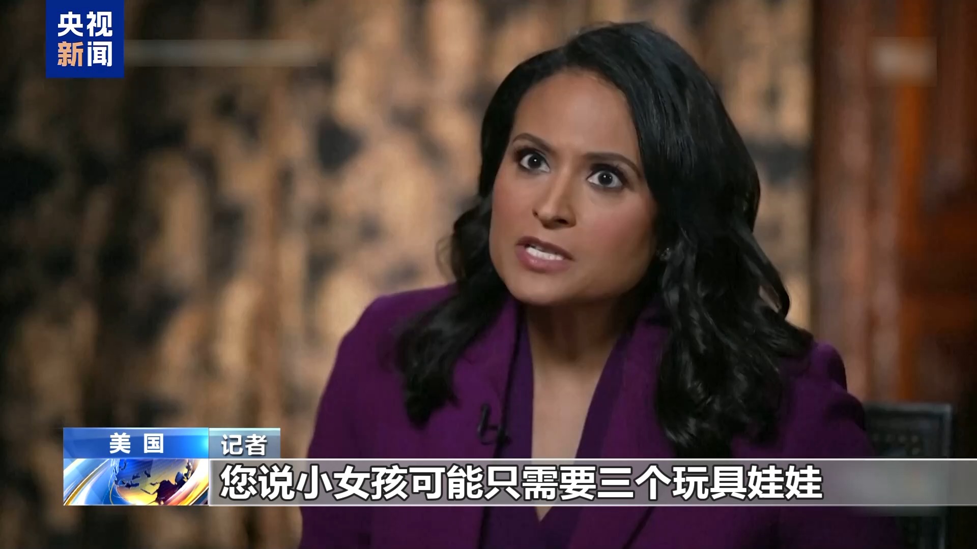 *美國總統 特朗普:*不,我不是這個意思,我只是在説小女孩們不需要三十個玩具娃娃,三個就夠了。她們也不需要二百五十支鉛筆,五支就夠了。