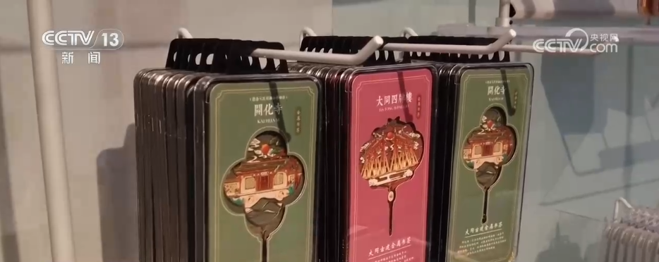 全新推出的“平城記憶”金屬書籤也備受遊客喜愛。書籤採用了精湛的鏤空雕刻工藝,將華嚴寺飛檐的靈動飄逸、善化寺的古樸莊重等標誌性建築完美呈現。這款書籤不僅是閲讀時的實用工具,更是文旅融合的體現,成為了遊客們記錄大同之行的獨特載體。