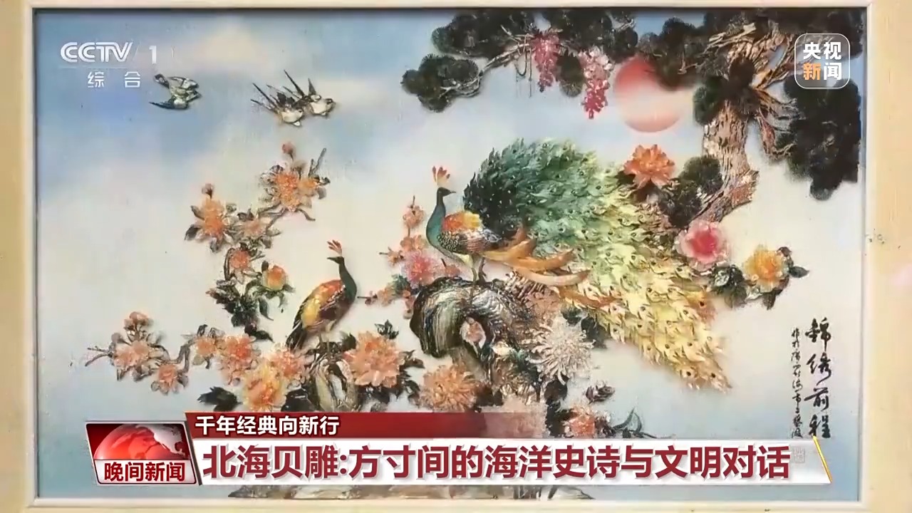 目前,在廣西北海,民間有從事貝雕生產的各類大小公司、作坊、工作室約20家,從業藝人上千。眼前這間工作室裏,既有“50後”的老手藝人,也有“00後”的新“守藝人”和“創意人”。作品形式既有貝雕畫、屏風、擺件等藝術品,也有文具、枱燈、首飾盒等實用品。隨着傳統紋樣躍入現代生活場景,貝雕再次走出國門,風靡國際市場。從“海洋記憶載體”到“文明對話者”,這門古老技藝始終在刀尖與貝殼的碰撞中續寫新的篇章。