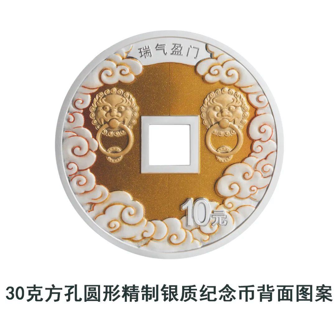30克方孔圓形銀質紀念幣為精製幣,含純銀30克,直徑40毫米,內孔7毫米×7毫米,面額10元,成色99.9%,最大發行量20000枚。