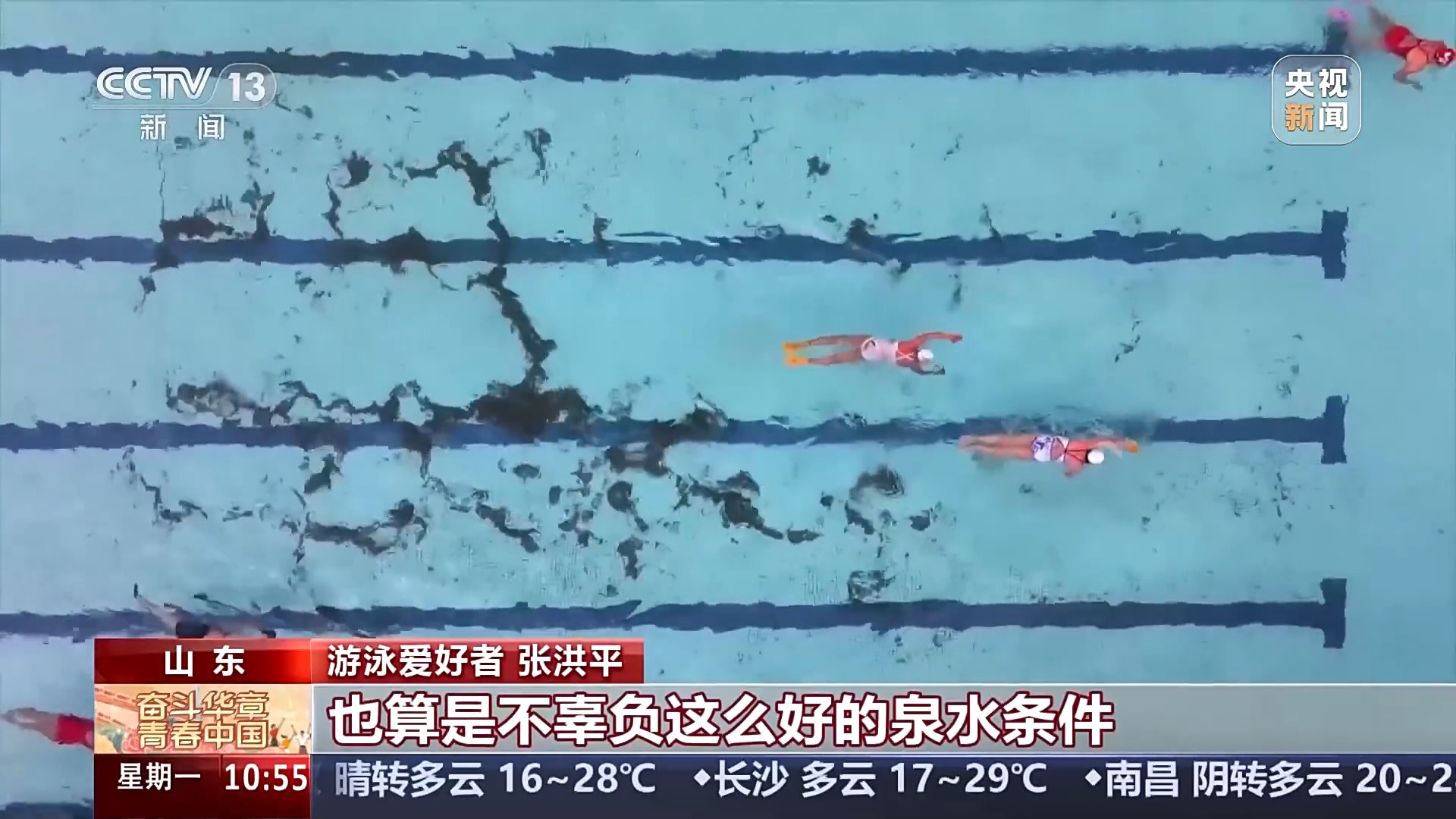 *游泳愛好者 張洪平:*我們泉城濟南有泉水浴場,我們都是從年輕的時候就在這裏暢遊。設施條件是越來越好,多出來鍛鍊,也算是不辜負這麼好的泉水條件。