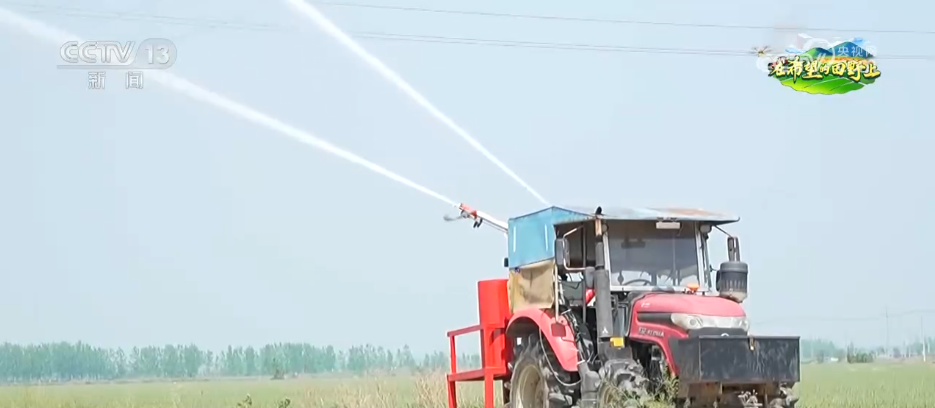 在淮安市金湖縣陳渡村,種糧大户潘寶銀租用了噴灌機,給他家的800畝小麥送來“灌漿水”。這種噴灌機被稱為“澆地神器”,專用機具設備的噴頭將水噴射到空中,種植户可通過調整灌溉半徑靈活控制灌溉面積,不僅提高了作業效率,也為增產提供了保障。