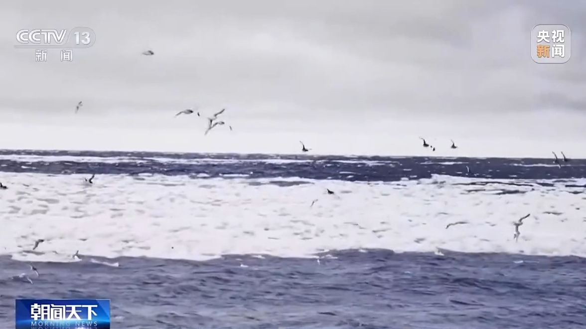 總枱央視記者 王楠:“雪龍2”號極地科考破冰船,在經過了一個星期的航行後,我們穿過西風帶,來到了位於南緯74度附近的第一個站位。現在,南極已經進入秋季,南大洋的海面大部分已經被冰雪覆蓋。現在的時間是晚上7點,室外温度在零下18攝氏度。在艉甲板,隊員們將進行中層魚拖網、磷蝦拖網、浮標布放等工作。