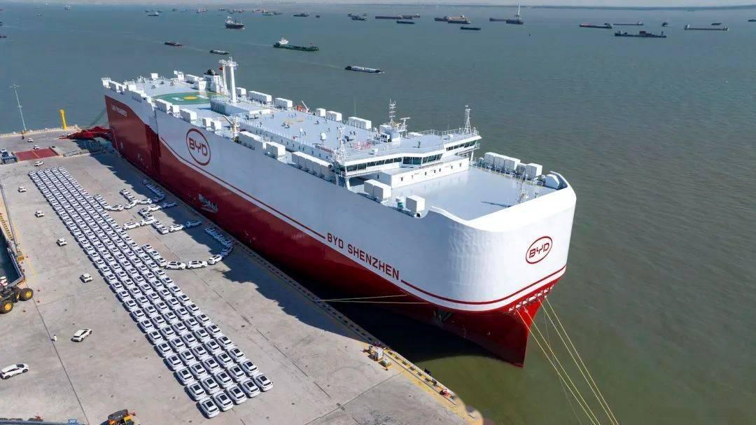 據介紹,比亞迪“深圳”號總長219.9米、型寬37.7米,可在甲板上並排停放18輛標準轎車。該船擁有9200個標準裝載車位,一次可運走20個標準足球場面積的停車空間。船隻共16層甲板,配備4層可調節甲板,通過先進的升降平台系統,可實現不同車型的高效混裝。該船還採用最新LNG雙燃料清潔動力技術,有效提高了船舶的節能減排效率,符合國際海事組織最新環保標準,是一艘綠色智能、環保高效的汽車運輸船。