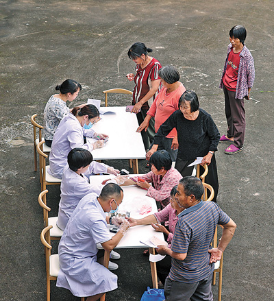 福建省泉州市高峯村,在駐村第一書記豐曉飛的協調下,當地組織醫務人員為村民義診。