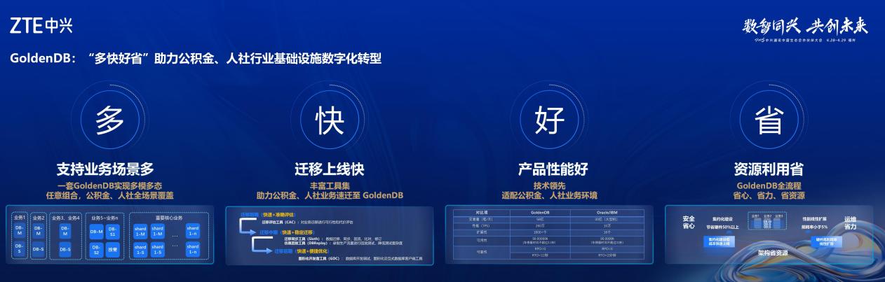 日前,“數智同興 共創未來”2025中興通訊中國生態合作伙伴大會在福州舉行,中興通訊在大會期間舉辦政務分論壇,發佈“公積金&人社系統分佈式改造方案”,旨在助力公積金&人社行業突破傳統集中式架構的侷限,構建高效、安全、彈性擴展的數字化數據底座,為民生服務領域的智能化升級提供堅實支撐。該方案基於中興通訊自主研發的GoldenDB數據庫,憑藉“多快好省”的核心優勢助力公積金&人社行業數據庫轉型升級。