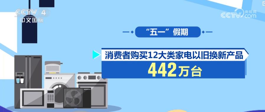 在“以舊換新”政策帶動下,“五一”假期,家用電器和音像器材銷售收入同比增長167.5%,智能手機等消費電子產品納入購新補貼範圍,通訊器材銷售收入同比增長118%,傢俱銷售收入同比增長1.7倍。