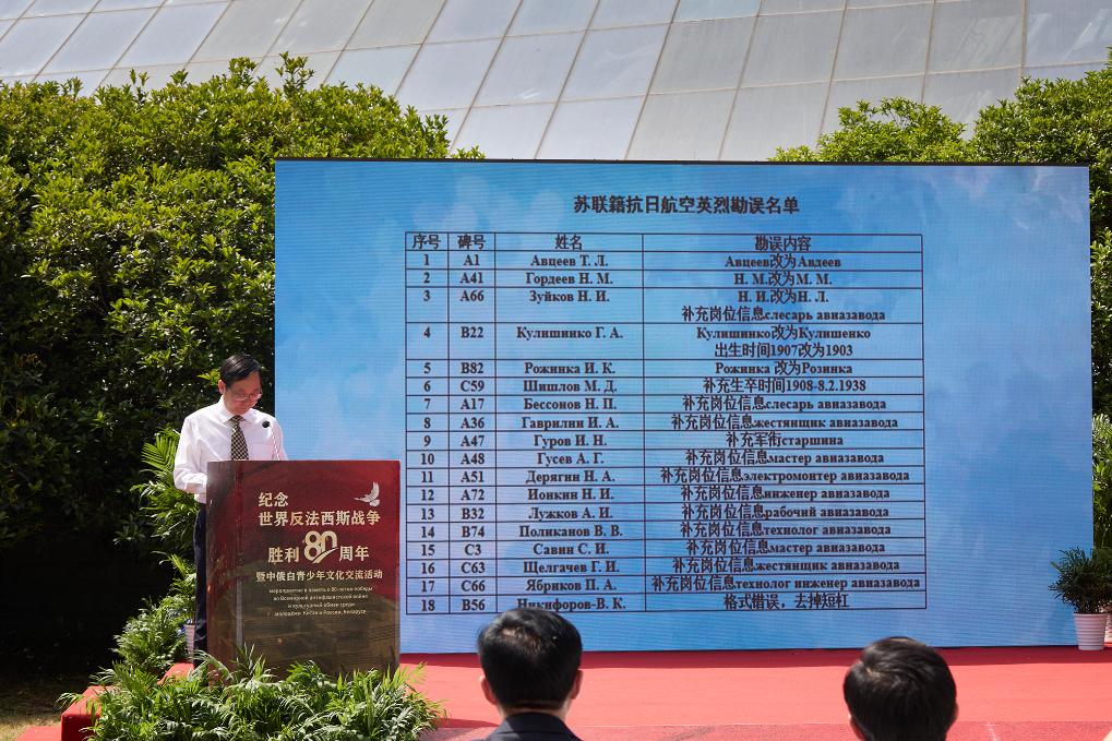 今年是中國人民抗日戰爭暨世界反法西斯戰爭勝利80週年。輿論認為,蘇聯籍抗日航空英烈信息更新,是緬懷英烈、銘記歷史。