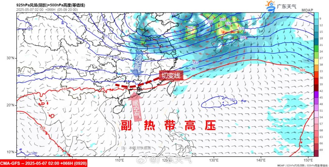 8日夜間-10日,冷空氣又開始“卷”,想南下逼退暖空氣,於是兩“氣”又“打”起來,同時還有高空槽推波助瀾,廣東將迎來新一輪強降水和強對流過程。