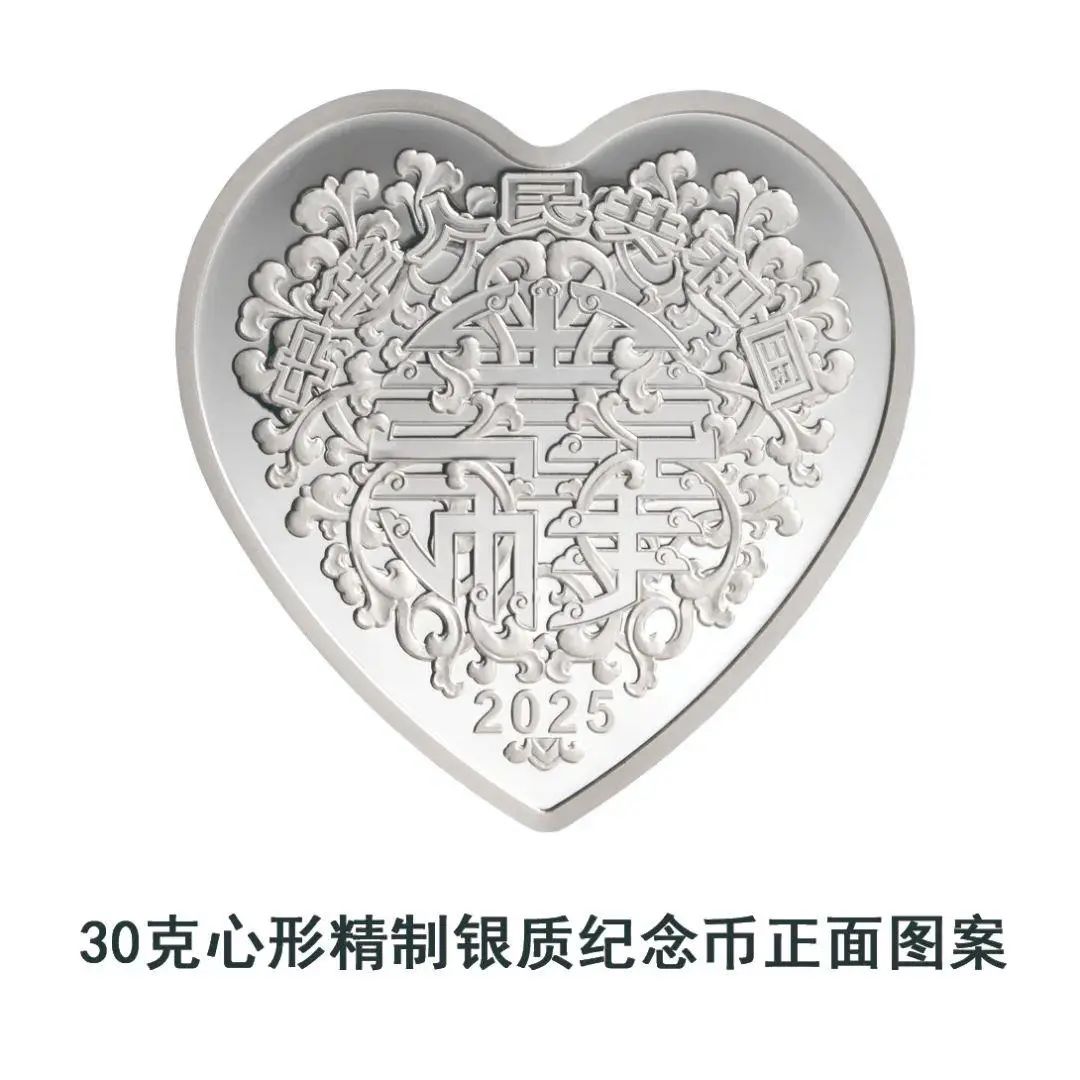 30克心形銀質紀念幣為精製幣,含純銀30克,外接正方形邊長40毫米,面額10元,成色99.9%,最大發行量40000枚。
