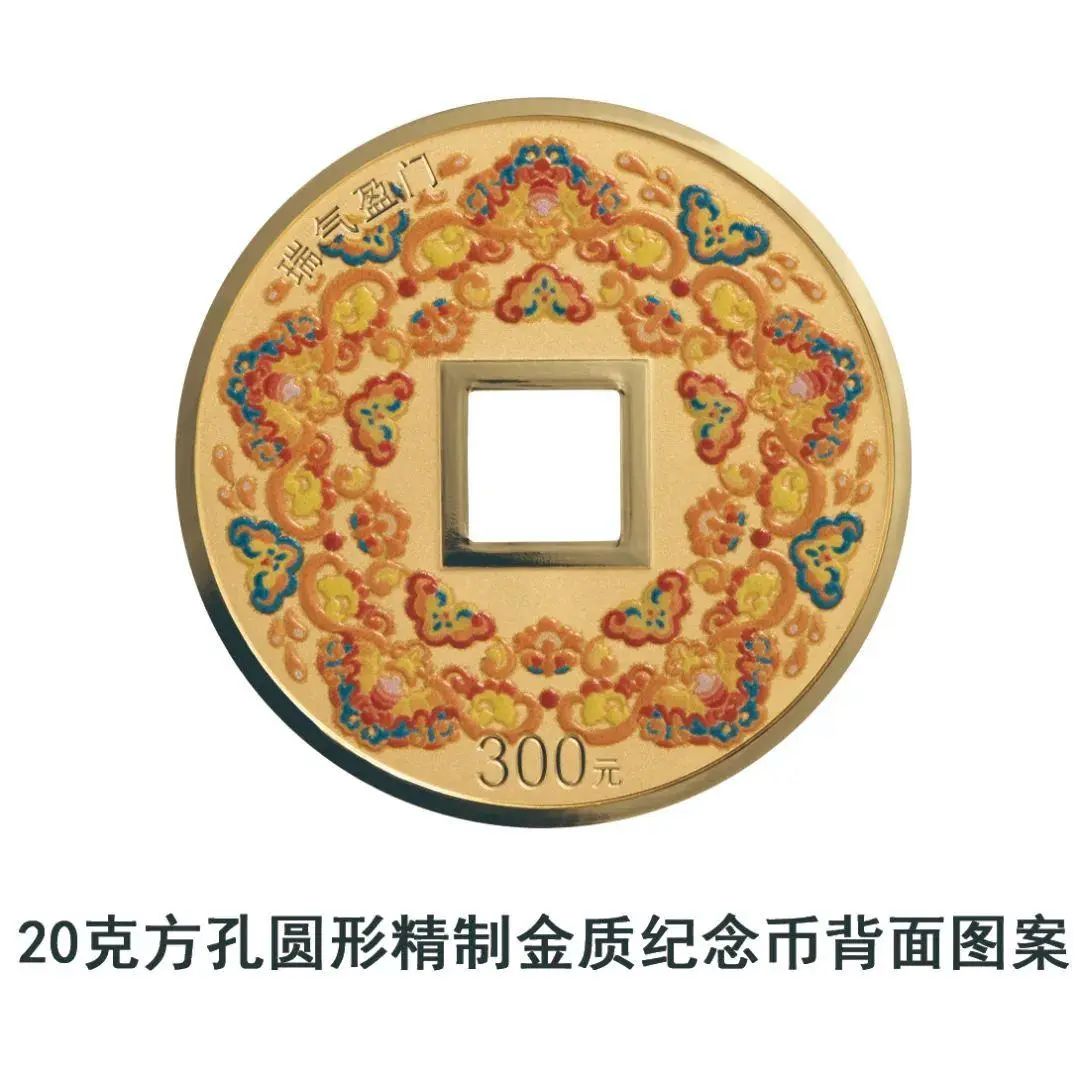 20克方孔圓形金質紀念幣為精製幣,含純金20克,直徑30毫米,內孔6毫米×6毫米,面額300元,成色99.9%,最大發行量2000枚。