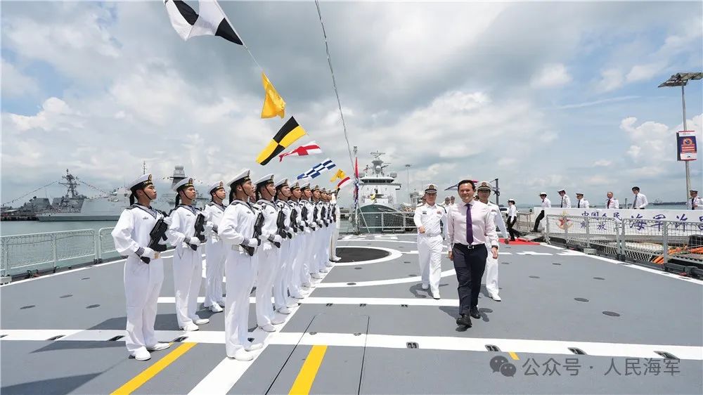 ▲新加坡官方代表登艦參觀 圖源“人民海軍”微信