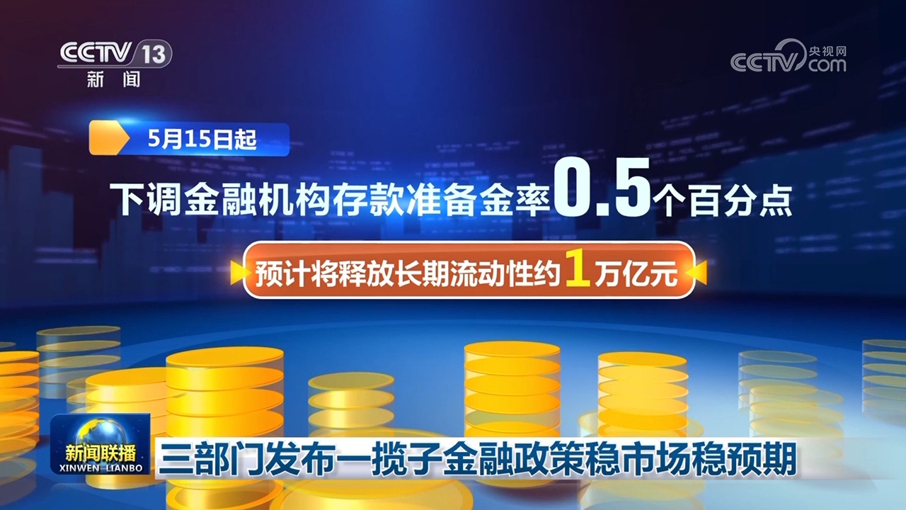 中國人民銀行宣佈推出十項政策措施。在數量型政策方面,5月15日起,下調金融機構存款準備金率0.5個百分點,預計將釋放長期流動性約1萬億元,同時階段性將汽車金融公司和金融租賃公司存款準備金率從5%調降至0%。價格型政策上,5月8日起下調政策利率0.1個百分點,降低個人住房公積金貸款利率0.25個百分點,5年期以上首套房利率降至2.6%。結構型政策上,設立5000億元“服務消費與養老再貸款”,加大對服務消費與養老的信貸支持,增加科技創新和技術改造再貸款額度、支農支小再貸款額度各3000億元等。