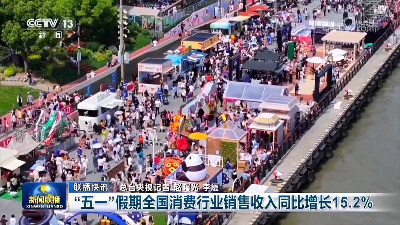 “五一”假期全國消費行業銷售收入同比增長15.2%