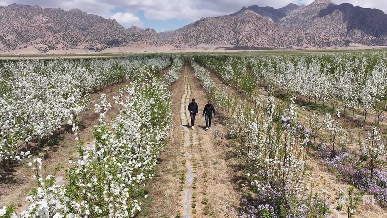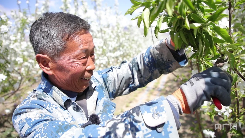 央廣網巴彥淖爾5月7日消息(記者魏全民)步入內蒙古巴彥淖爾市烏拉特前旗白彥花鎮塔漢其嘎查林果產業園,大片果樹迎來最美花期,微風拂過,花香沁人心脾,果園裏村民高忠標正專注地修剪着果樹。“我今年60多歲了,在這裏打工五六年了,一個月能掙五六千塊錢,挺好的。”