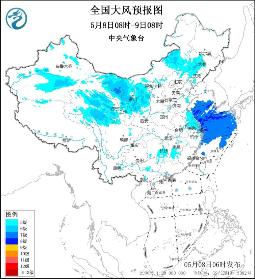 此外,受冷空氣影響,8日至9日,西北地區東部、內蒙古、華北將先後有4~8℃降温,上述部分地區有4~6級風,陣風7~10級,內蒙古西部、新疆南疆等地部分地區伴有沙塵天氣。目前,大風藍色預警生效中。