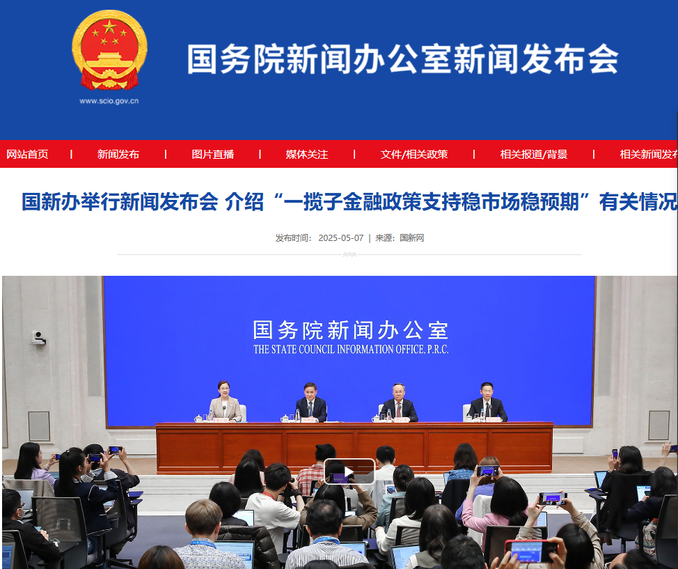 在5月7日國新辦新聞發佈會上,中國人民銀行、金融監管總局、中國證監會主要負責人介紹“一攬子金融政策支持穩市場穩預期”有關情況,回應市場關切,並明確了增量政策安排。中國人民銀行推出三大類共十項的一攬子貨幣政策措施,金融監管總局將推出八項增量政策,證監會從三方面入手持續穩定和活躍資本市場。
