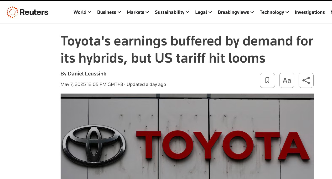 豐田此前曾表示,將繼續正常運營,並致力於降低固定成本,不會採取諸如提高汽車價格等更激進的措施來應對關税政策。