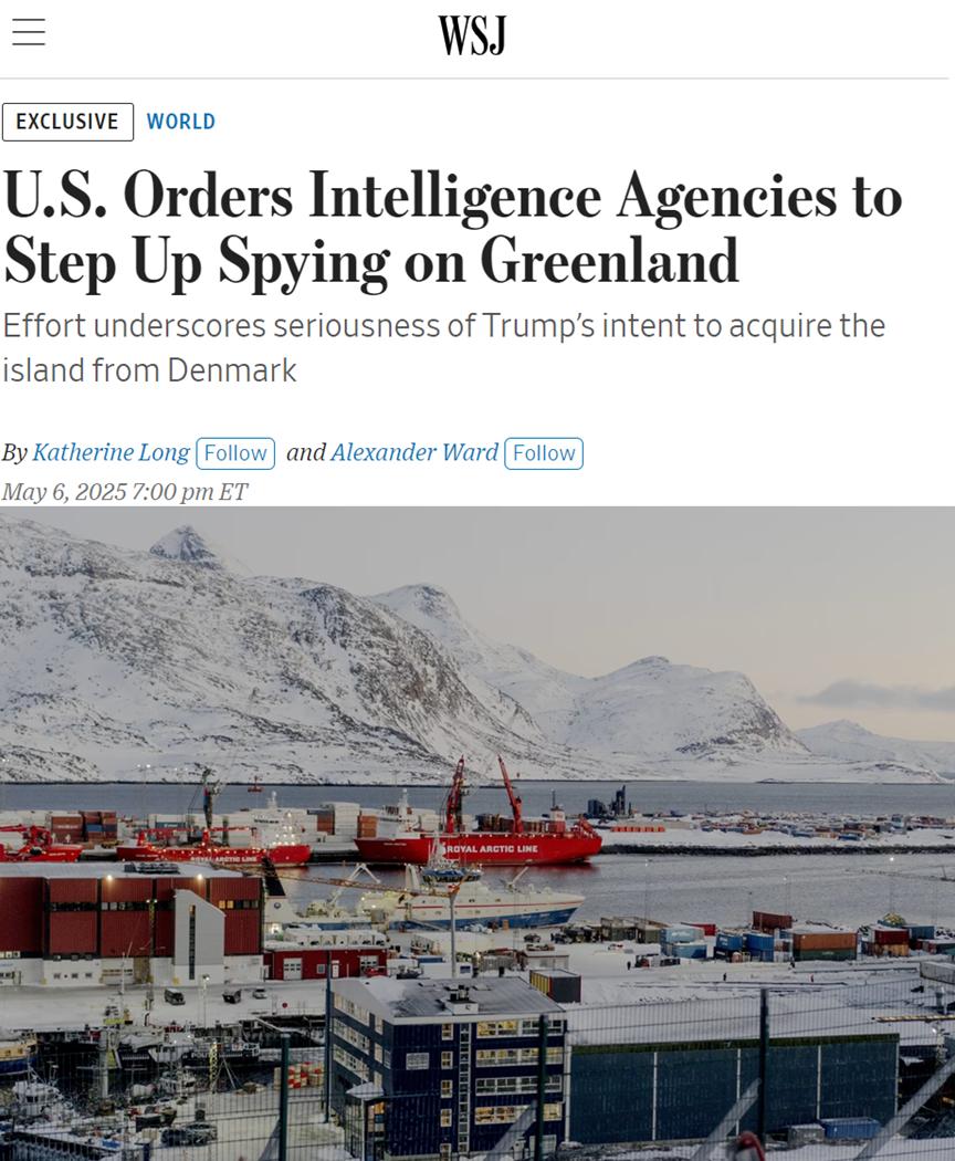 《華爾街日報》:美國加強針對格陵蘭島間諜活動 圖源:報道截圖