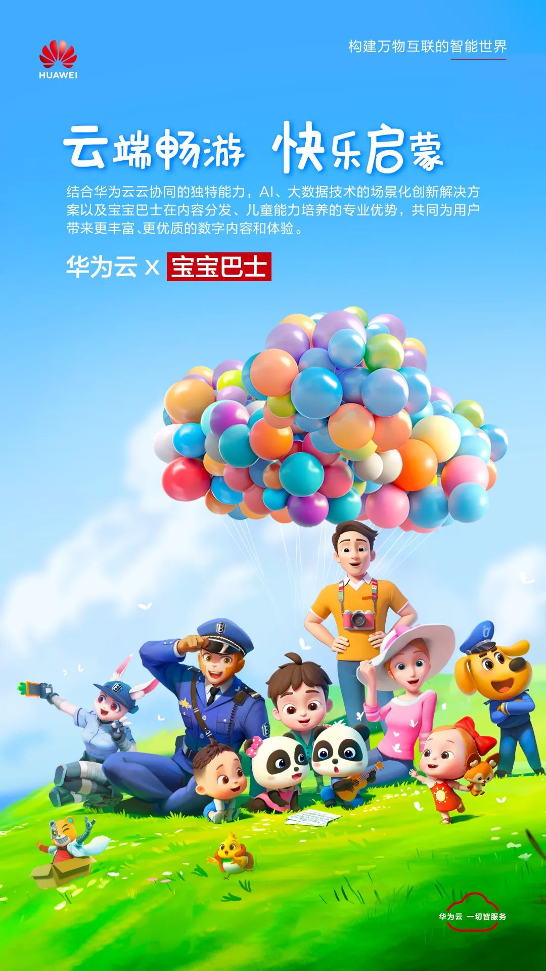 華為雲堅持讓科技更有温度,讓技術向善,凝聚温暖,與愛同行。作為“好搭檔”和“同路人”,華為雲讓寶寶巴士開上“雲端”,用數字化為中國啓蒙教育出海“撥開雲霧”,擎起一片藍天。