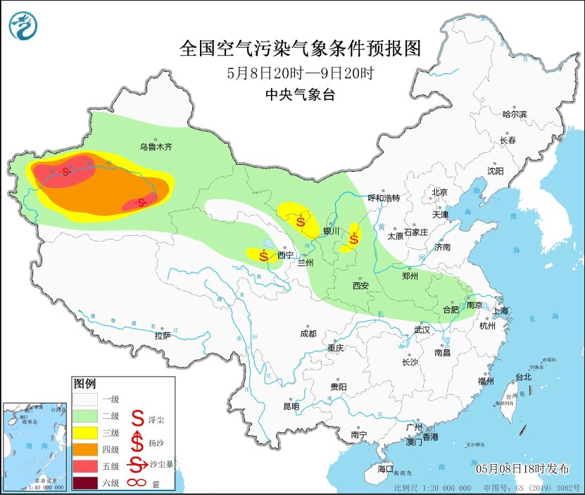 8日夜間至9日,新疆南疆盆地、內蒙古西部、甘肅中東部、青海東部、陝西北部等地的部分地區有揚沙或浮塵天氣,其中,新疆南疆盆地局地有沙塵暴或強沙塵暴。此外,11日至13日,西北地區仍多沙塵天氣。