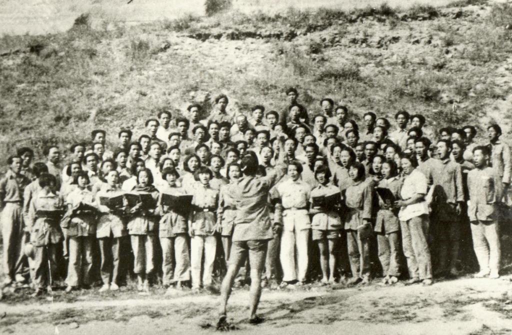 一邊是首演時,魯藝師生用鐵桶、水缸來伴奏;一邊是亞歷山德羅夫在黑板上寫下樂譜和歌詞……戰時艱苦的條件,絲毫不妨礙兩部樂曲迸發出偉大精神力量。