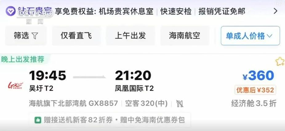 同樣,在廣西南寧市,從這裏出發去國內多地的機票價格也明顯回落。記者在某平台看到,目前,南寧飛海口的最低機票價格為200多元,飛成都只需400多元。而在住宿方面,價格同樣極具性價比。
