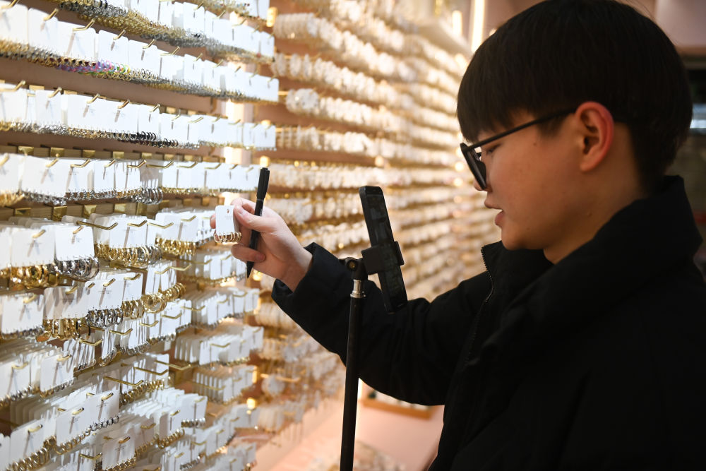 2月9日,義烏國際商貿城的一家飾品店鋪工作人員通過手機直播平台銷售產品。新華社記者 黃宗治 攝