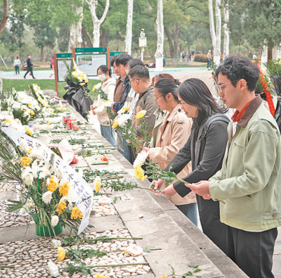 4月4日清明節,湖北武漢江漢大學的師生自發前往武漢市解放公園,緬懷為阻擊日寇而英勇犧牲的蘇聯援華航空隊烈士。