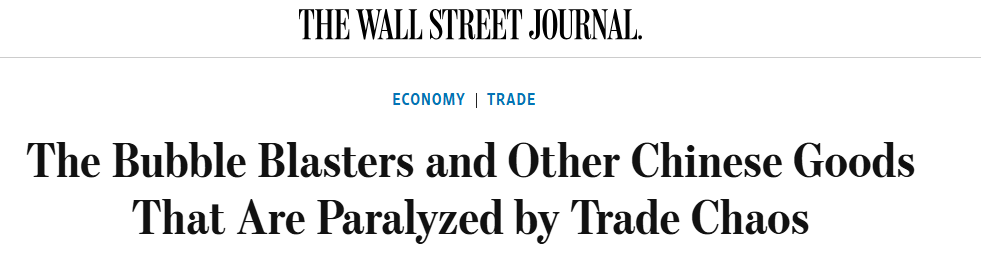 近期接受《華爾街日報》採訪時,一位美國玩具進口商這樣説。其從中國訂購的產品原本要參加美國電視購物公司QVC的夏季促銷活動。在美國政府宣佈對中國產品加徵145%的關税後,QVC凍結了訂單。這位進口商估算,自己已因關税失去了約100萬美元的新生意。