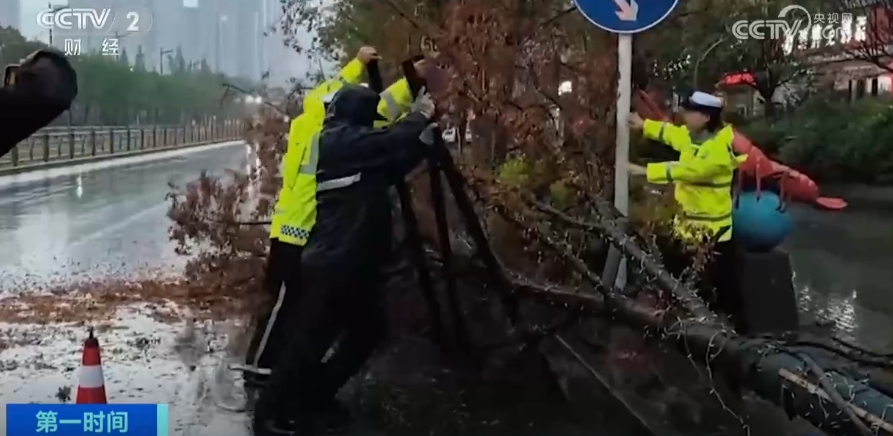 在黃石市鐵山區,一棵大樹因為狂風暴雨被連根拔起,倒伏在道路中央,執勤民警指揮過往車輛安全繞行,並協同園林和道路養護等多部門,清理倒伏樹木,保障道路正常通行。