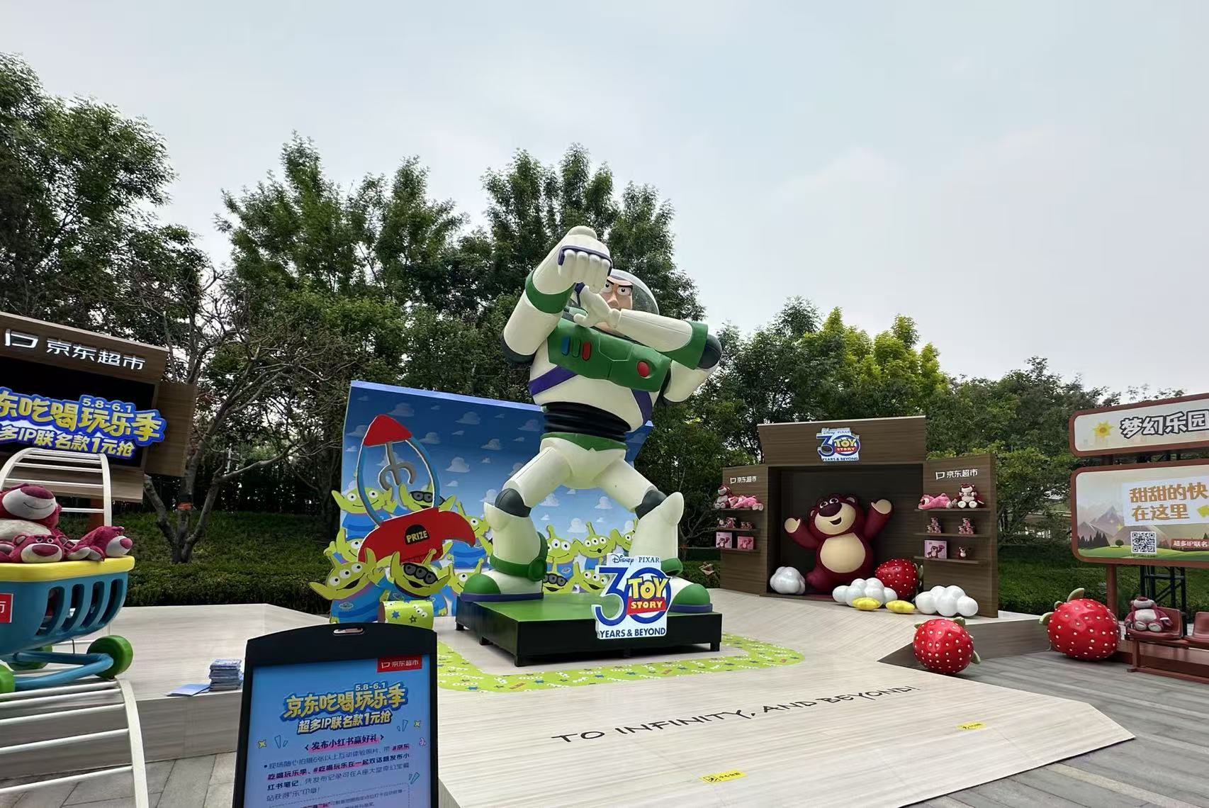 活動在京東總部園區落地“吃喝玩樂”主題IP遊樂園,涵蓋迪士尼史迪奇、泰國黃油小熊、Hello Kitty等國際IP,設置甜心告白、萌寵治癒等11大主題打卡點,將職場空間轉化為潮流社交場景。京東超市依託自營模式整合伊利、元氣森林等百餘家品牌資源,為IP方提供從選品到落地的全鏈路服務,品牌方無需額外投入即可共享平台流量。