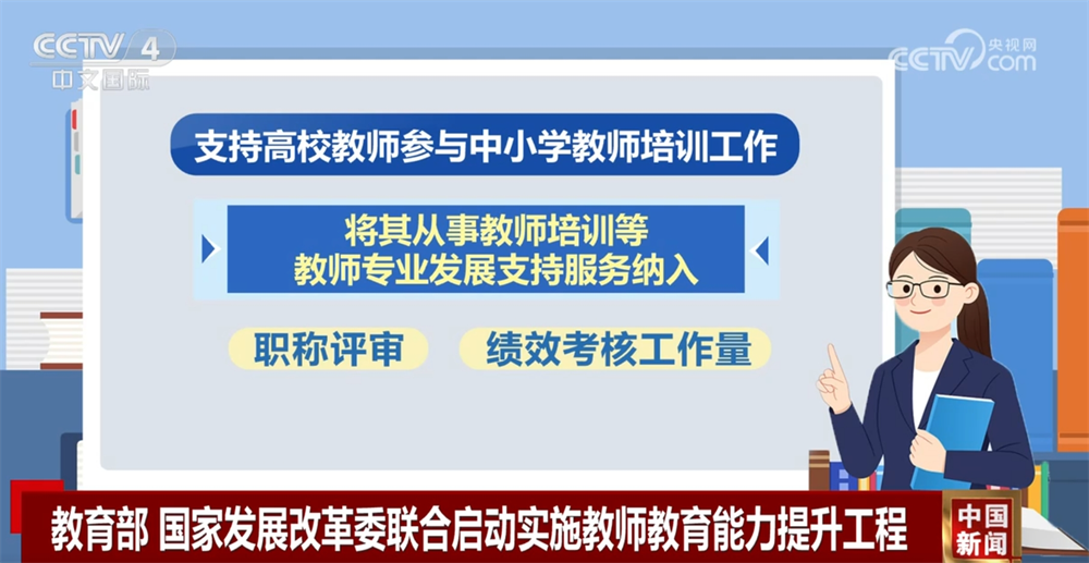 *央視網消息:*近日,教育部、國家發展改革委聯合啓動實施教師教育能力提升工程,從構建教師人才培養新模式、搭建教師教育研究新平台等5個方面,重點支持建設一批高水平教師教育院校,全面提升教師教育能力。