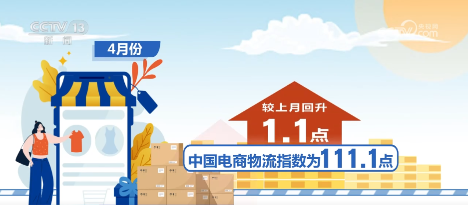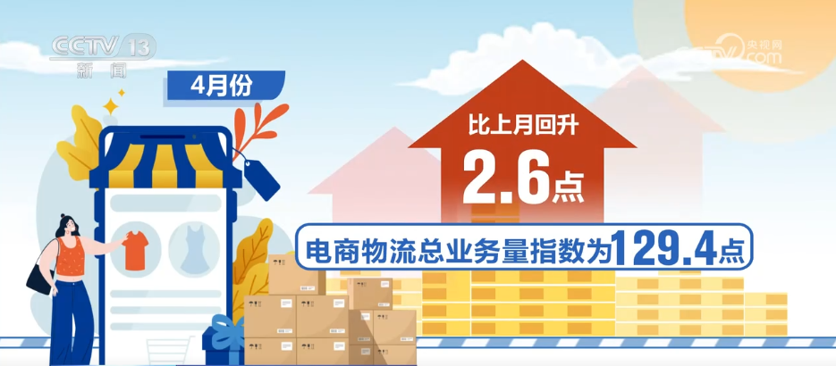 *央視網消息:*中國物流與採購聯合會今天(5月9日)公佈4月份中國電商物流指數。在各項穩增長、擴內需、促消費政策的促進下,4月中國電商物流指數繼續上升,主要分項指數均實現環比回升,線上消費增長勢頭良好。