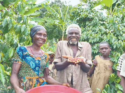 在布隆迪魯哈加里村的一處咖啡種植園,園主一家展示剛採摘下來的咖啡果。本報記者 黃培昭攝
