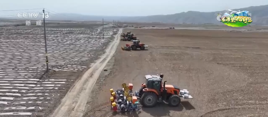 在白銀市平川區西格拉灘,這裏的海拔在1400米至1600米。由於地勢高、氣候寒涼,播種時間較晚。這幾天,在當地的高標準農田裏,多台搭載着北斗導航系統的播種機正在作業,走一次就完成開溝、鋪膜、播種、水肥管道鋪設等工序。通過衞星定位,播種機能將播種誤差控制在2.5釐米以內,與傳統的人工播種相比,精準度提升了80%以上,且播種效率也提高了3倍。