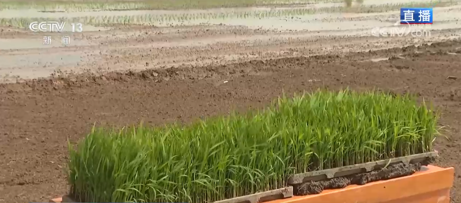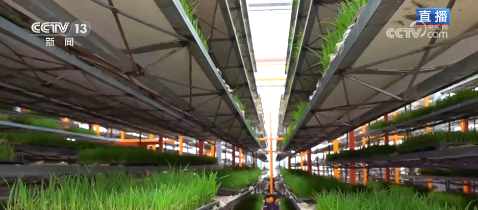 農諺説:水稻要高產,育苗是關鍵。記者手裏的秧苗有5到6片葉片,高度在18釐米以下,這樣生長狀態的秧苗非常適合機器插秧,這些秧苗來自距離這裏不遠的智慧育秧工廠。在這個育秧工廠裏,水稻育秧就像工廠生產流水線一樣,採用機械化運作,時間、温度、密度等都能精準控制。育秧機上的秧苗排隊經過機器一側的噴淋設備,自動完成澆灌。不僅大大提高土地利用率、降低育秧成本,還有效降低了農藥、化肥的使用量。更重要的是,育秧大棚能將傳統的40天的育秧週期縮短到18天左右,育秧效率翻倍,時間減半,全年可為周邊農户提供機插秧苗超過5000畝。