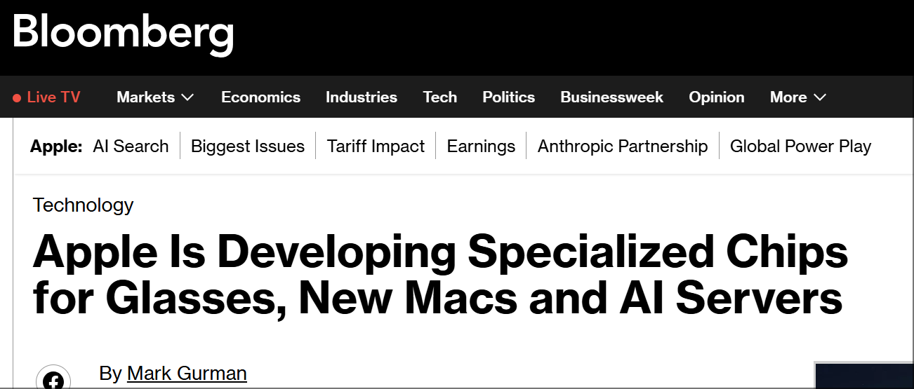 古爾曼:蘋果開發全新專用芯片,用於智能眼鏡、新款Mac和AI服務器