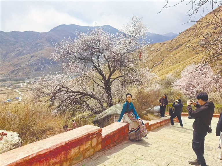 連日來,隨着桃花等各類花卉相繼盛開,西藏的春日美景吸引了眾多市民遊客紛至沓來。遊客對旅行體驗的需求日益多樣化,“賞花經濟”蓬勃興起。除了欣賞自然風光、感受民俗文化外,旅拍成為許多遊客記錄旅行、分享生活的重要方式。