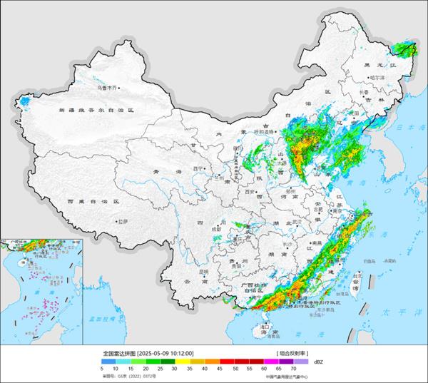 昨天(8日)我國降水強勢,南方和北方形成了兩條對流雨帶。