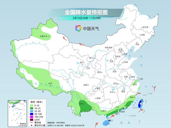 明天夜間到後天,福建東南部、雲南東南部和中部、華南南部、海南島、台灣島等地部分地區有中到大雨,其中,台灣島中北部等地部分地區有暴雨。