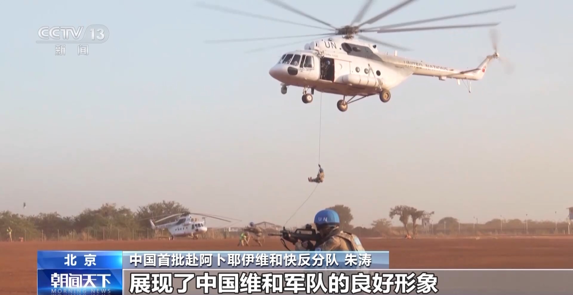 中國首批赴阿卜耶伊維和快反分隊 朱濤:任務中,我們積極履行授權職責,全體維和官兵齊心協力、不畏艱險,高標準完成好每一項維和任務,為助力地區和平穩定、維護世界和平貢獻了力量,展現了中國維和軍隊的良好形象。
