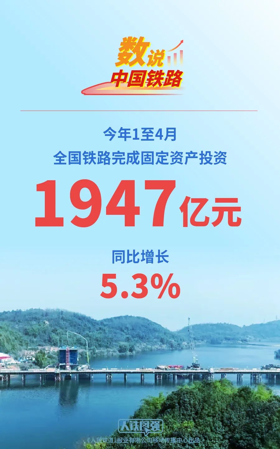 央視網消息 :據中國鐵路微信公眾號消息,今年1至4月,鐵路建設優質高效推進,全國鐵路完成固定資產投資1947億元,同比增長5.3%,充分發揮鐵路建設投資對經濟的拉動作用,積極為經濟持續回升向好注入新動能。