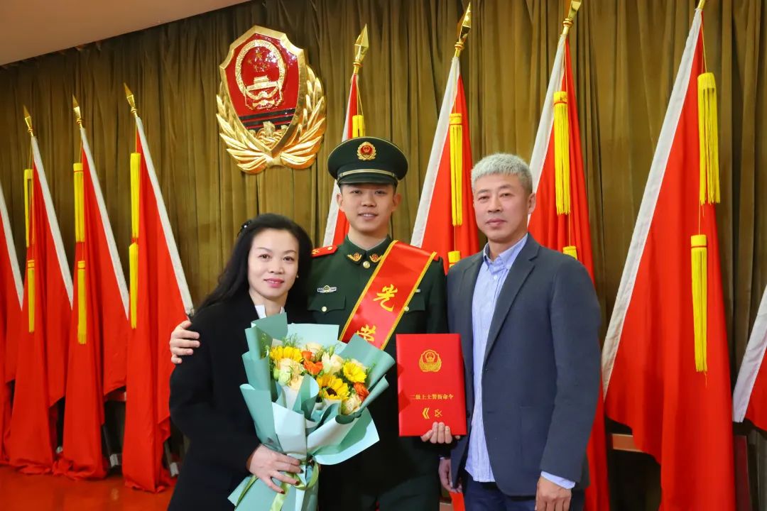 *王子成:*去年,我晉升為二級上士,我的父母跨越2000多公里來到授銜儀式現場,見證這個光榮時刻。站在莊嚴的警徽下,我輕輕摟住母親的肩膀,這個珍貴的瞬間在快門聲中被定格。這張照片記錄了我的高光瞬間,也記錄了我們一家人的歡聚時刻。