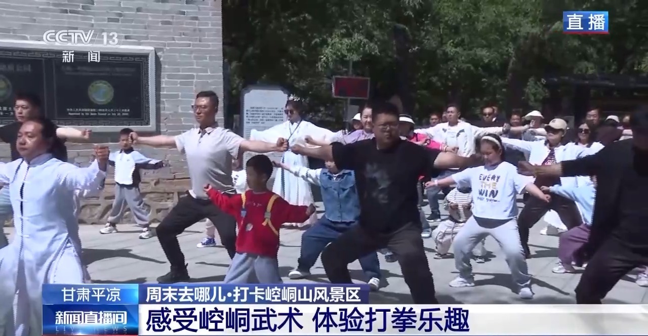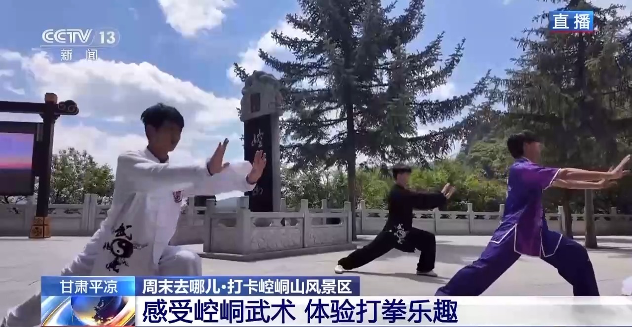 *總枱記者 馬麗:*在這裏,也有不少銀髮遊客們練習打拳,舒展筋骨。崆峒武術的傳承人也會跟遊客互動,教大家養生拳。崆峒山是我國五大武術流派少林、武當、峨眉、崑崙、崆峒之中,崆峒武術的發祥地。如今,這裏也將崆峒武術作為展演項目定期上演。表演者們都功夫了得,他們基本上從小就開始練習。崆峒武術最講究的就是奇兵、養生。除了日常的刀槍劍戟、斧鉞鈎叉,還有農具也可以用來防身。這是因為很多招式都來源於農業生產和生活當中,之後也都形成了完整的招式和套路。這些兵器方便攜帶,可以達到出奇制勝的效果。