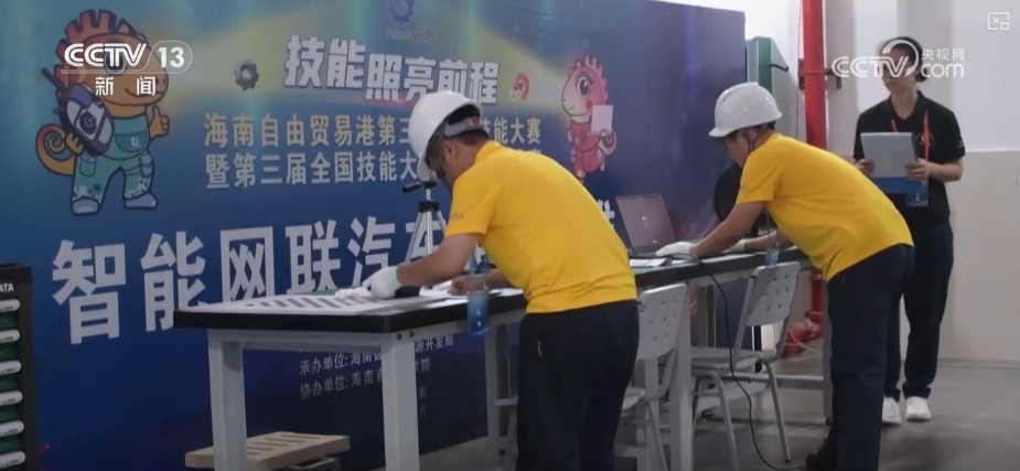 在第三屆海南自貿港職業技能大賽現場,近1200名選手在70個競賽項目進行技能比拼。和往屆相比,2025年新增了無人機植保、智能網聯汽車裝調運維、數字孿生應用技術、污水處理等20個競賽項目,突出綠色低碳技術技能應用。一些選手跨專業參賽,提升自己的複合能力。