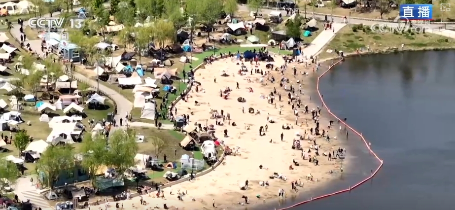 温暖和煦的天氣吸引了近2萬遊客來此處遊玩,綠地上已支起了幾百頂花花綠綠的帳篷,這裏是公園專門規劃的帳篷營地。到了夜晚,湖中央噴泉還將上演音樂秀和水幕電影,不少人都衝着這場視聽盛宴,來享受親水時光。