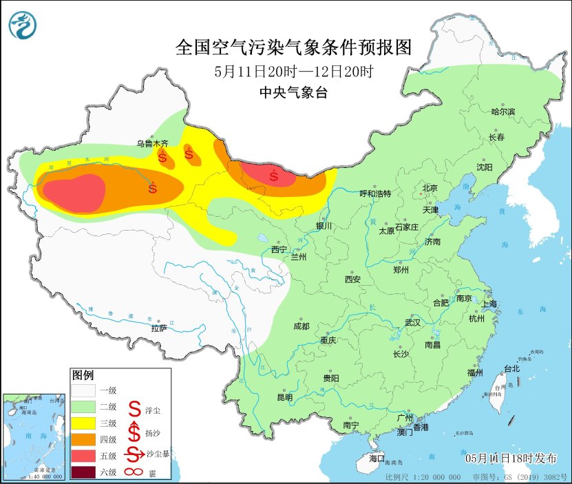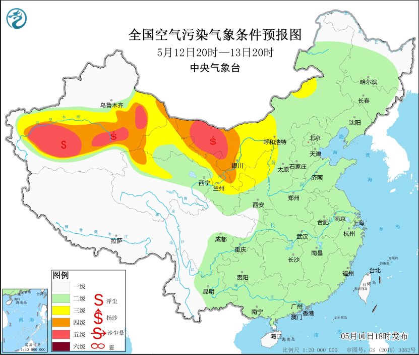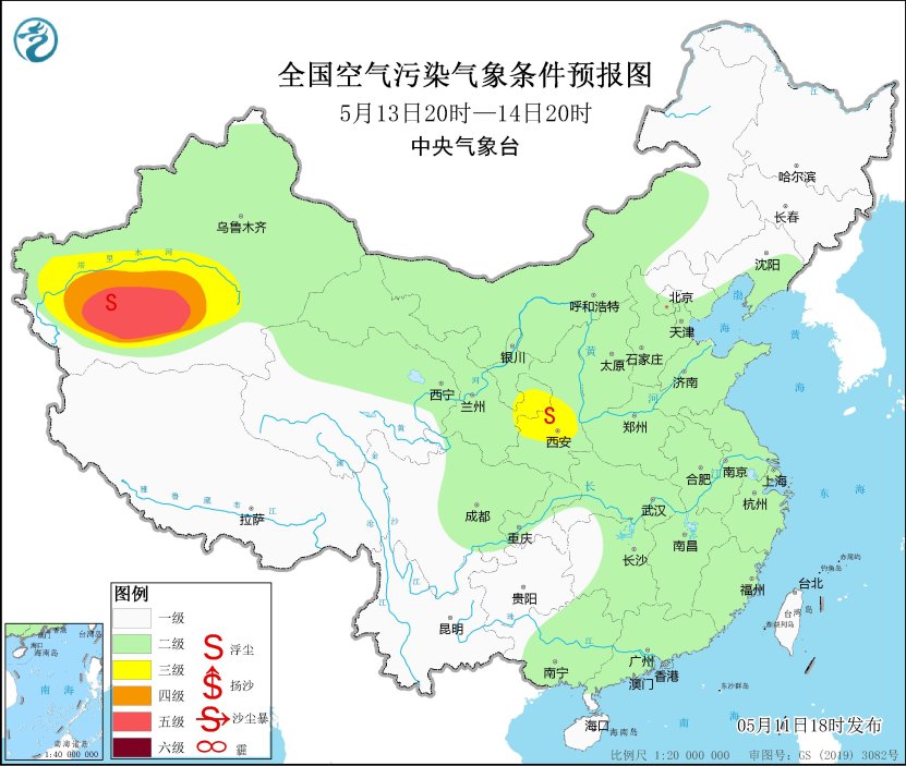 12日至13日,新疆東部和南部、青海西北部、甘肅河西、內蒙古中西部等地的部分地區有揚沙或浮塵,其中,新疆南部、內蒙古西部局地有沙塵暴。16日至17日,新疆東部、內蒙古西部、甘肅河西等地的部分地區有沙塵天氣。
