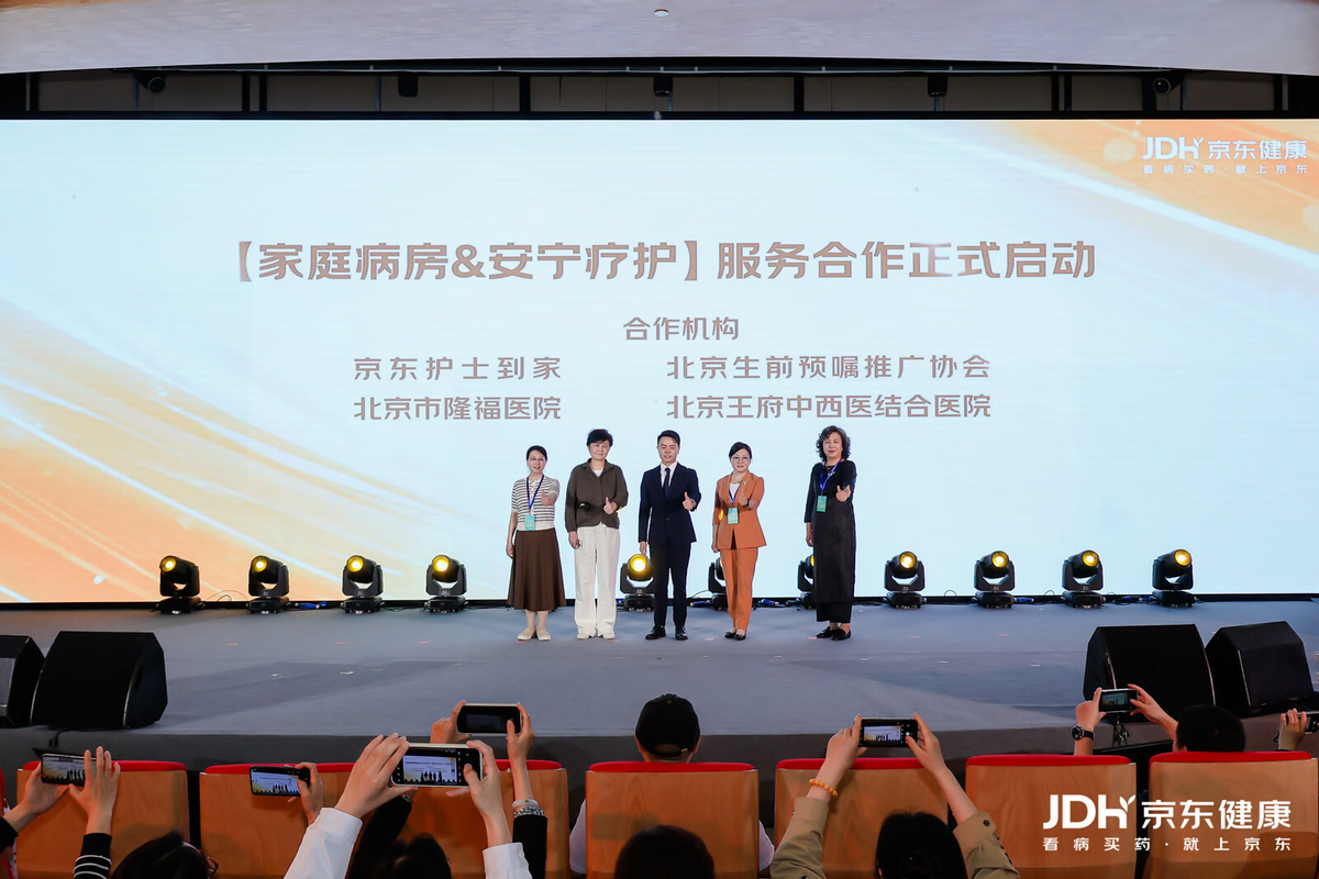 會上,京東護士到家還與北京生前預囑推廣協會、北京市隆福醫院、北京王府中西醫結合醫院,共同啓動了“家庭病房與安寧療護”服務合作。這項服務推出後,將有效緩解當前臨終關懷護理服務中的痛點、難點,為臨終患者提供專業的家庭照護解決方案,從而更好地維護患者尊嚴,滿足患者和家庭的臨終關懷需求。