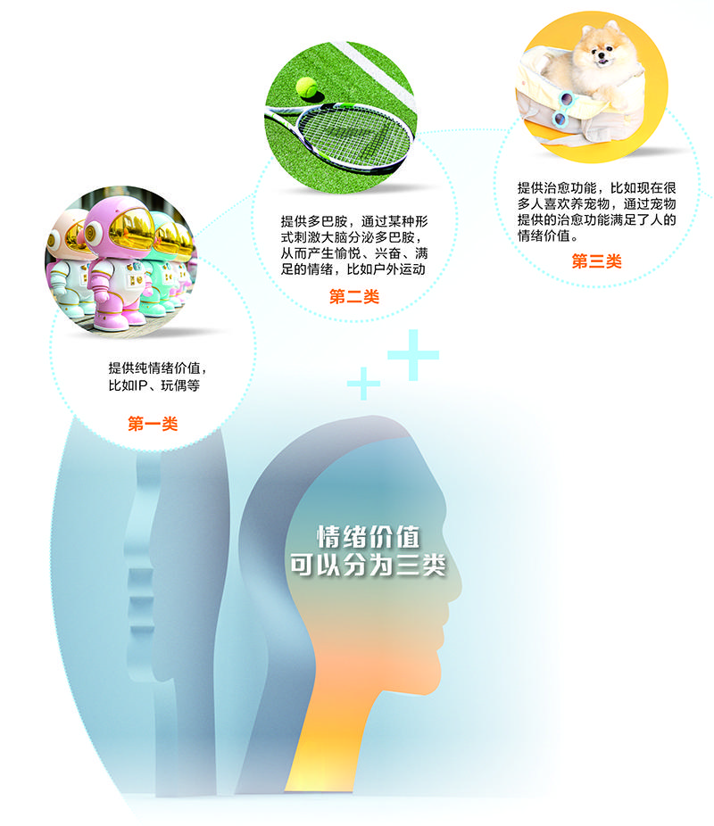 在李海看來,情緒價值可以分為三類:第一類提供純情緒價值,比如IP、玩偶等;第二類提供多巴胺,通過某種形式刺激大腦分泌多巴胺,從而產生愉悦、興奮、滿足的情緒,比如户外運動;第三類提供治癒功能,比如現在很多人喜歡養寵物,通過寵物提供的治癒功能滿足了人的情緒價值。“我們覺得,能滿足以上三種消費者情緒價值的賽道,是未來比較重要的投資方向。”李海説。